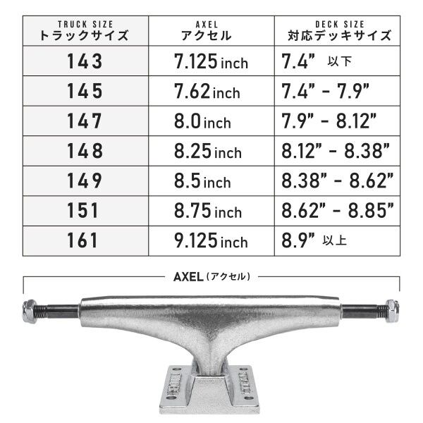 ハンガーとキングピンのクリアランスが通常より広く設定されている為、グラインド時の引っ掛かりがなくスムースなグラインドを実現させます。
